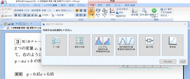 点線以降は,スタディエイドの「統計」機能を使って散布図と回帰直線を表示させたものです。