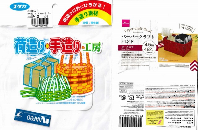 PPバンドやペーパークラフトバンドを何種類も色数にして10色ほどを集めていましたが,まずは6色で一つ完成させようと考えました。。
