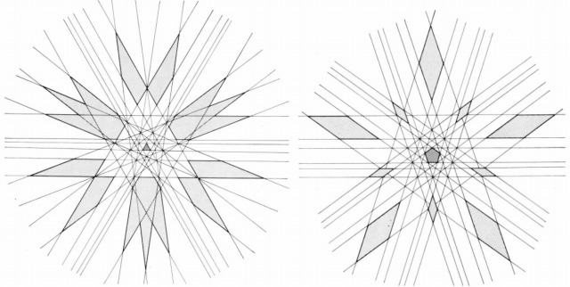 著作には『20・12面体についての解説』に続いて20もの星形の解説や作り方が述べられています。しかし,20面体の星形以上にとても作成することが難しそうで,当面の目標や作成についての目安すら立てられないありさまです。