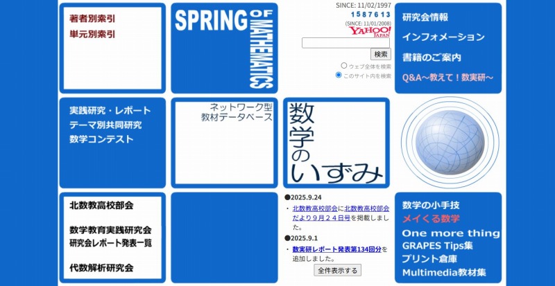 検索を繰り返していたとき「数学のいずみ」が目に留まり久し振りに訪れてみました。「ネットワーク型教材データベース」と銘打って実践研究やレポート・数学コンテストなど,指導法の研究や教材開発などなど盛りだくさんです。「数学の小手技」や「メイくる数学」・「プリント倉庫」などもあり,全貌が捉えられないくらい広い世界が広がっています。とても勉強になります。とても刺激になります。ぜひ繋いでみてください。