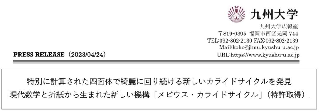 現代数学と折紙から生まれた新しい機構「メビウス・カライドサイクル」(特許取得)』