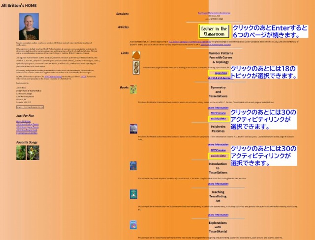riviere 氏から教えていただいたリンクは『ジル・ブリットンのホーム』に繋がります。ホームからはさらに数え切れないほどのページやアクティビティへと拡がっていて未だ全貌が見渡せないほどです。