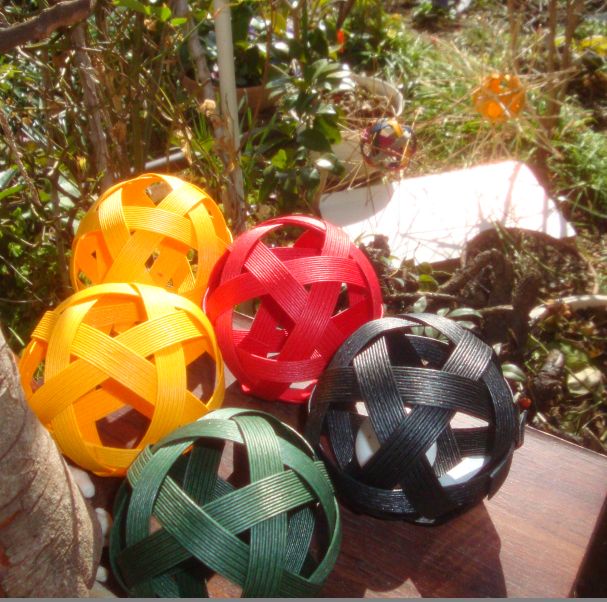 後方:右の黄色いボールには黄色のピンポン玉を入れてみました。
