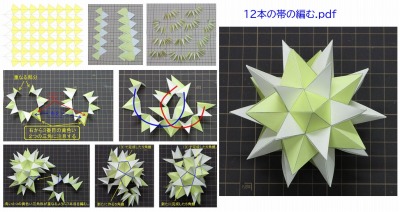 数楽工作俱楽部の作成方法は12本の「帯を編む」というものです。詳しい図付きの解説は示されているのですが,とても難しそうでどうあがいても私の手におえそうにありません。