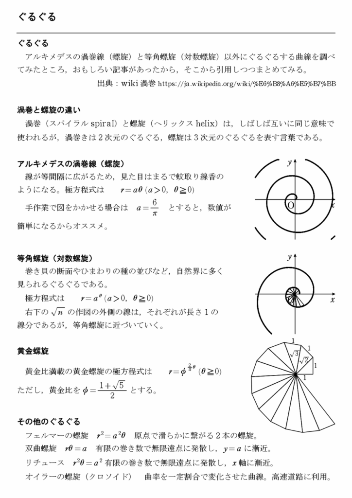 対数螺旋とアルキメデスの渦巻線の違いについてまとめてあります。