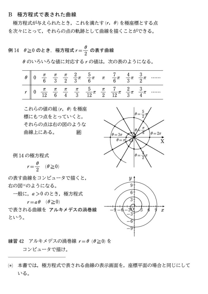 ・数Ⅲの教科書にはアルキメデスの渦巻線のページがある程度です。