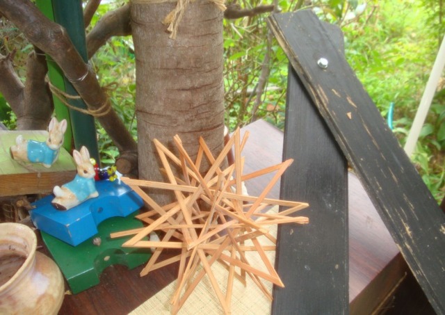先ごろ作った発泡スチロールの中型作品や,2004年にいただいた竹製の小型作品を手元に据えながらでした・・・。前作を完成させてからでも3週間余り,思いのほか苦しみましたが何とか完成です。