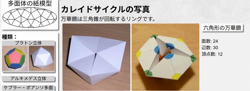 前作の「エッシャーのカレイドサイクル」は「紙の六角形の万華鏡」にあった「視覚的な説明(六角形)カライドサイクル」をみて製作することができました。