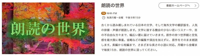 今回の「らじる☆らじる」では次のような見逃し番組も聞いてみました。