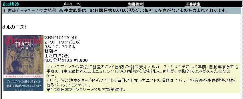 ・青春アドベンチャーで「オルガニスト」を聞き,本を求めたことがありました。