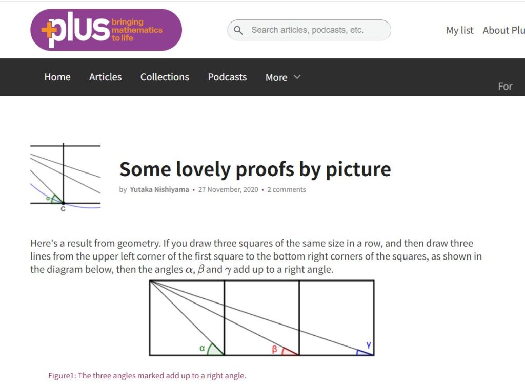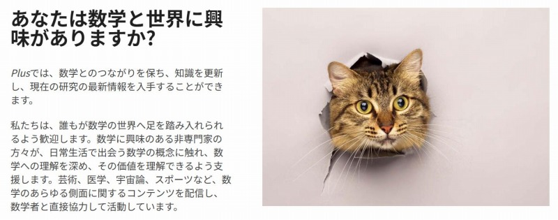 『Plus』はケンブリッジ大学が行っている「ミレニアム数学プロジェクト」活動の一部らしく,「誰もが日常世界で出会う数学の概念に触れ,数学への理解を深め,その価値を理解できるよう支援します。」とあります。