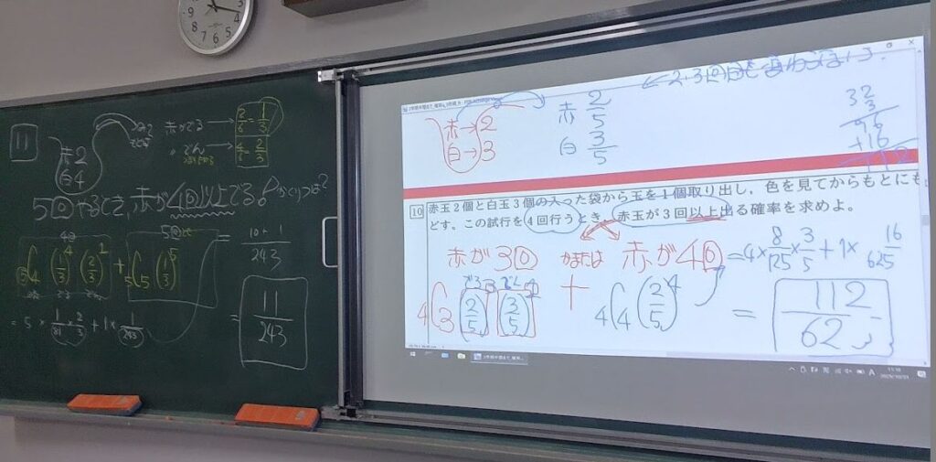 定期考査の2時間前,解説を後回しにしていた2問を前半20分ほどで説明しました。授業の後半は主体性プリントの配布や3トライアルの演習課題に取り組む時間という計画でした。